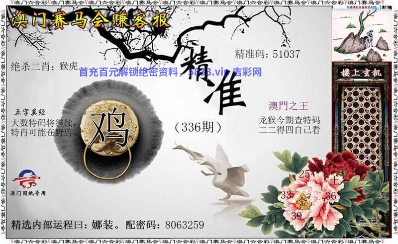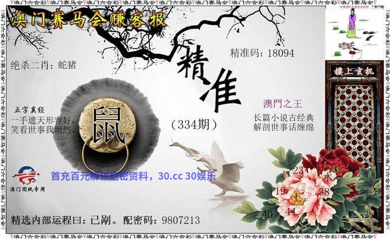 | 334期:今期马兔牛出特,枯木岩前月影斜开:猴46准 ②合双+大数 |