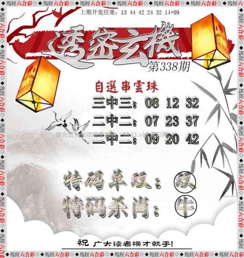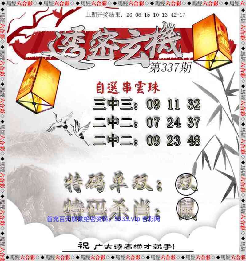 | 337期:今期羊马猪出特,日日高楼看雁飞开:鸡09准 ②合单+大数 |
